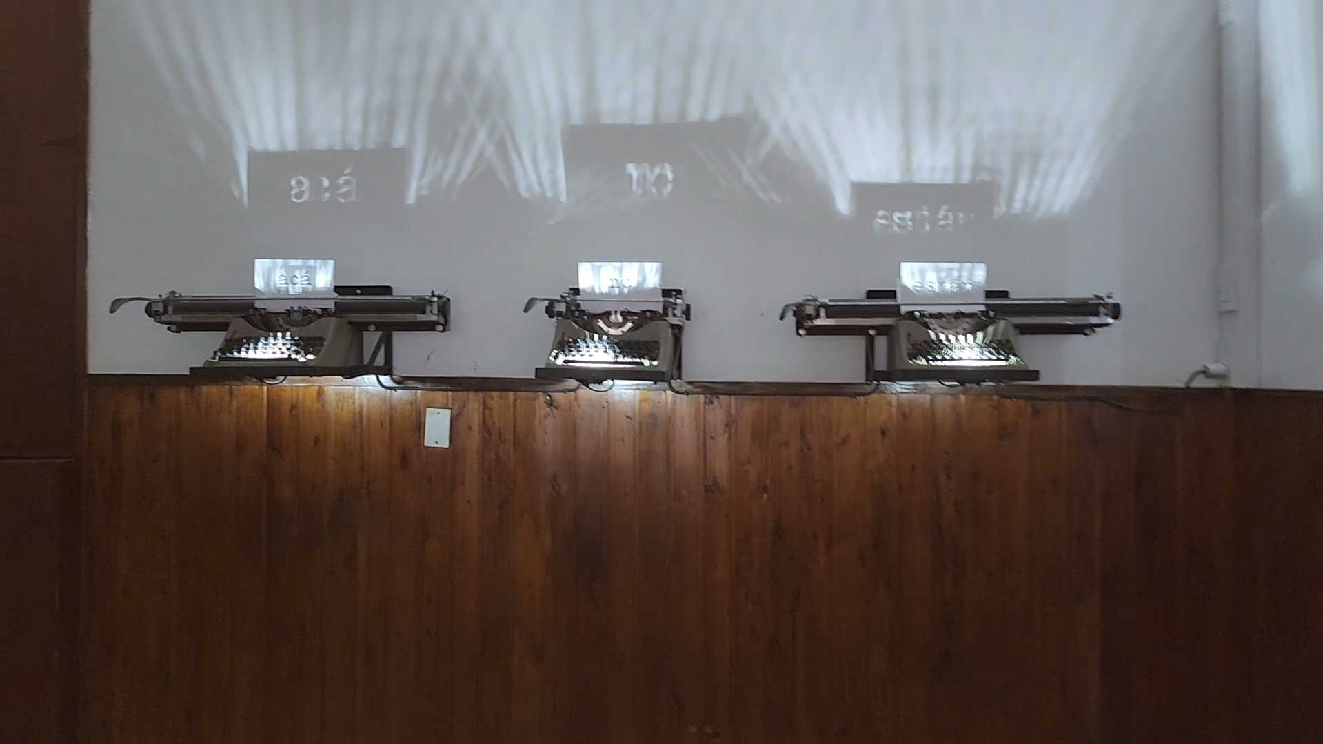 La propuesta conceptual se articula a partir de una evocación de la burocracia policial y del silencio, trabajando sobre la tensión entre lo visible y lo oculto. Las máquinas de escribir funcionan como dispositivos de registro y, al mismo tiempo, como huellas de aquello que no se dice. En este sentido, la obra pone en juego una relación entre escritura, ocultamiento, ausencia y memoria, amplificada por la presencia de los testimonios sonoros.