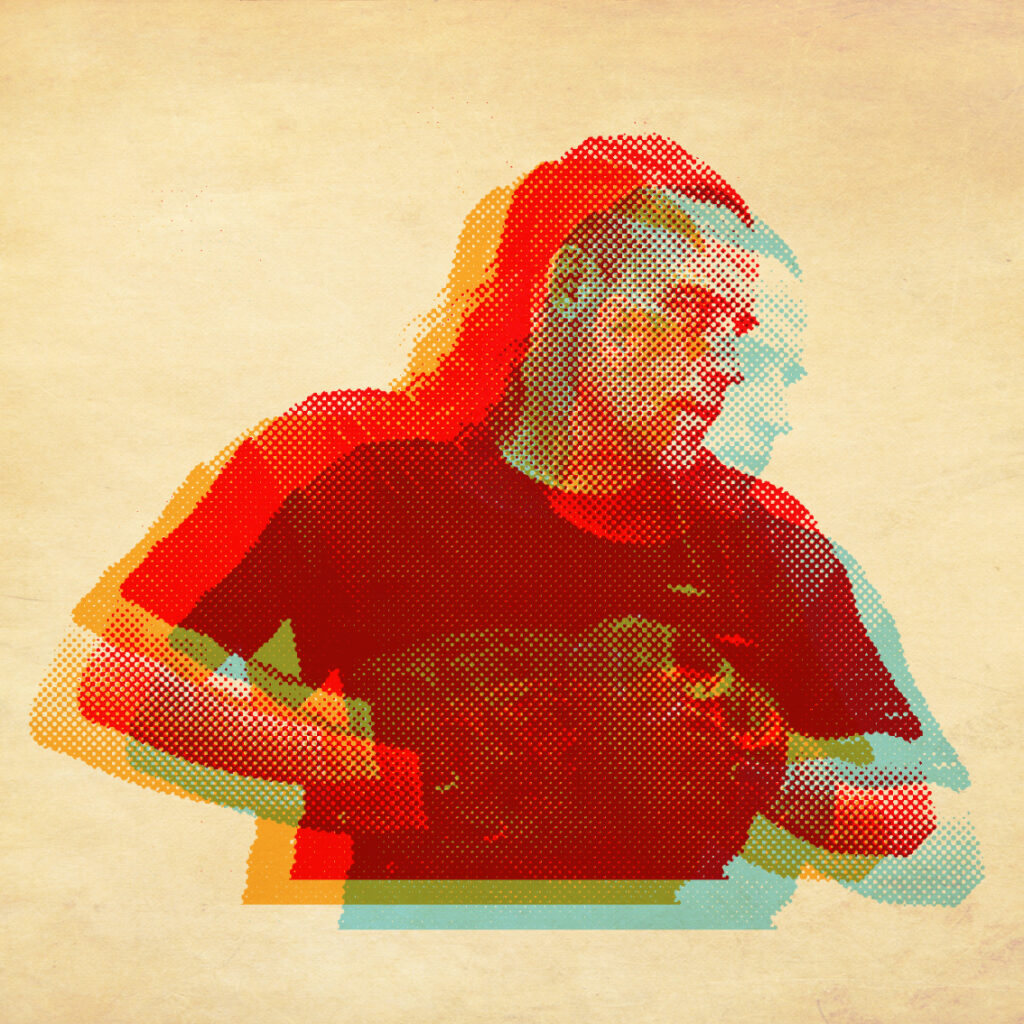 La fuente de inspiración para el desarrollo de esta propuesta es la gráfica de posters de boxeo de los años 40, tramas abiertas de offset, tintas transparentes sobreimpresas, bloques grandes te texto y tipografías bold condensadas.