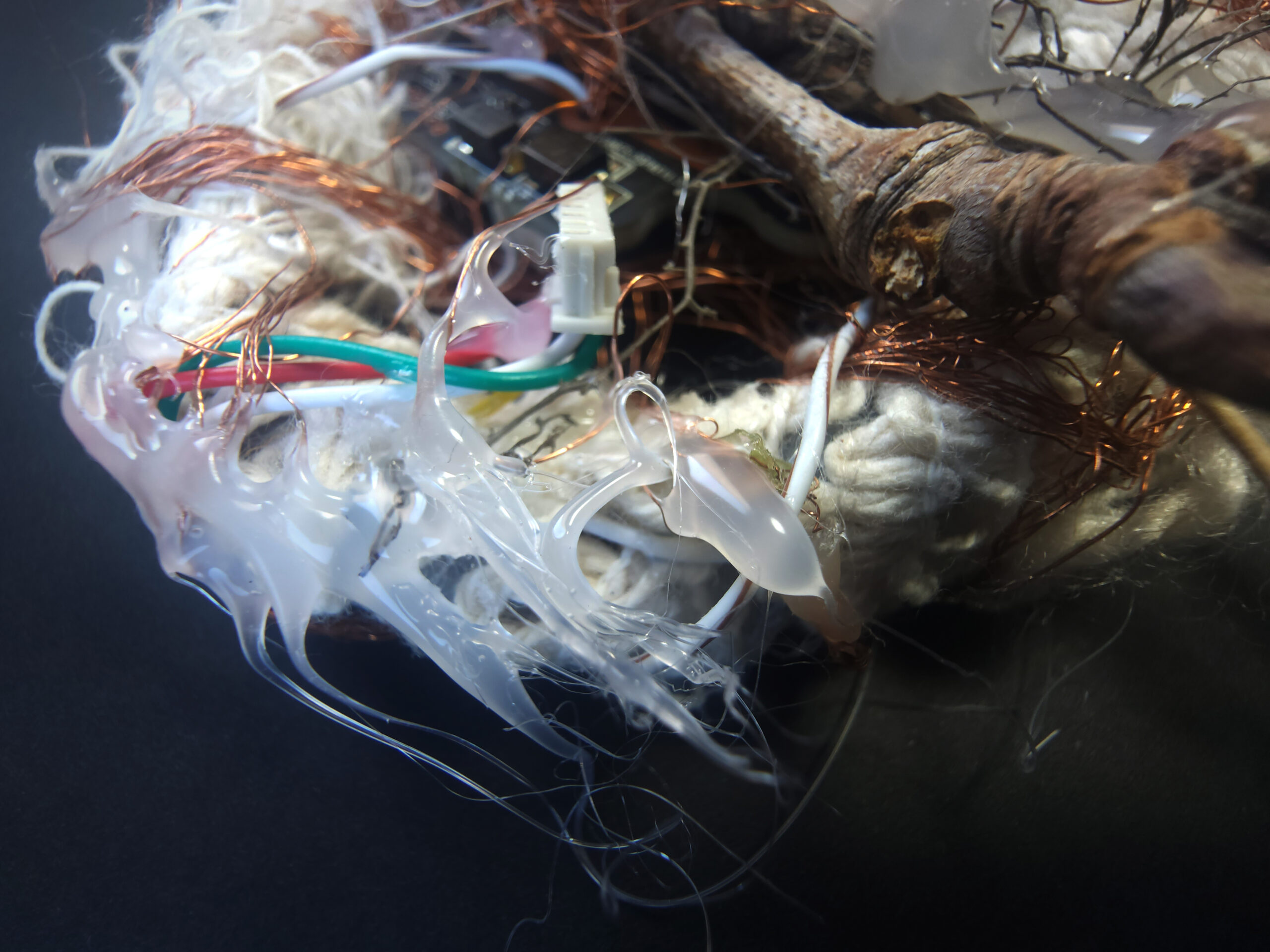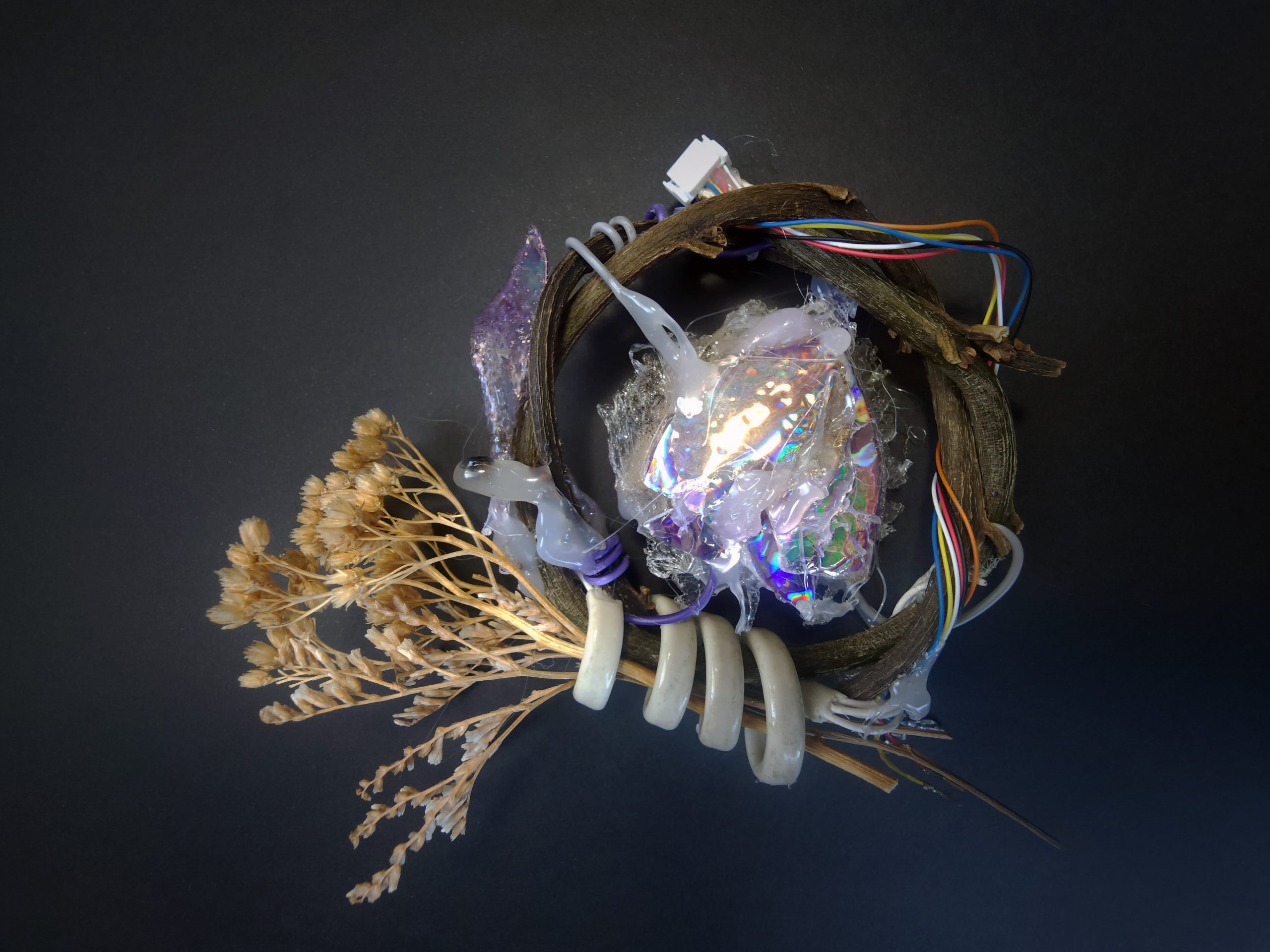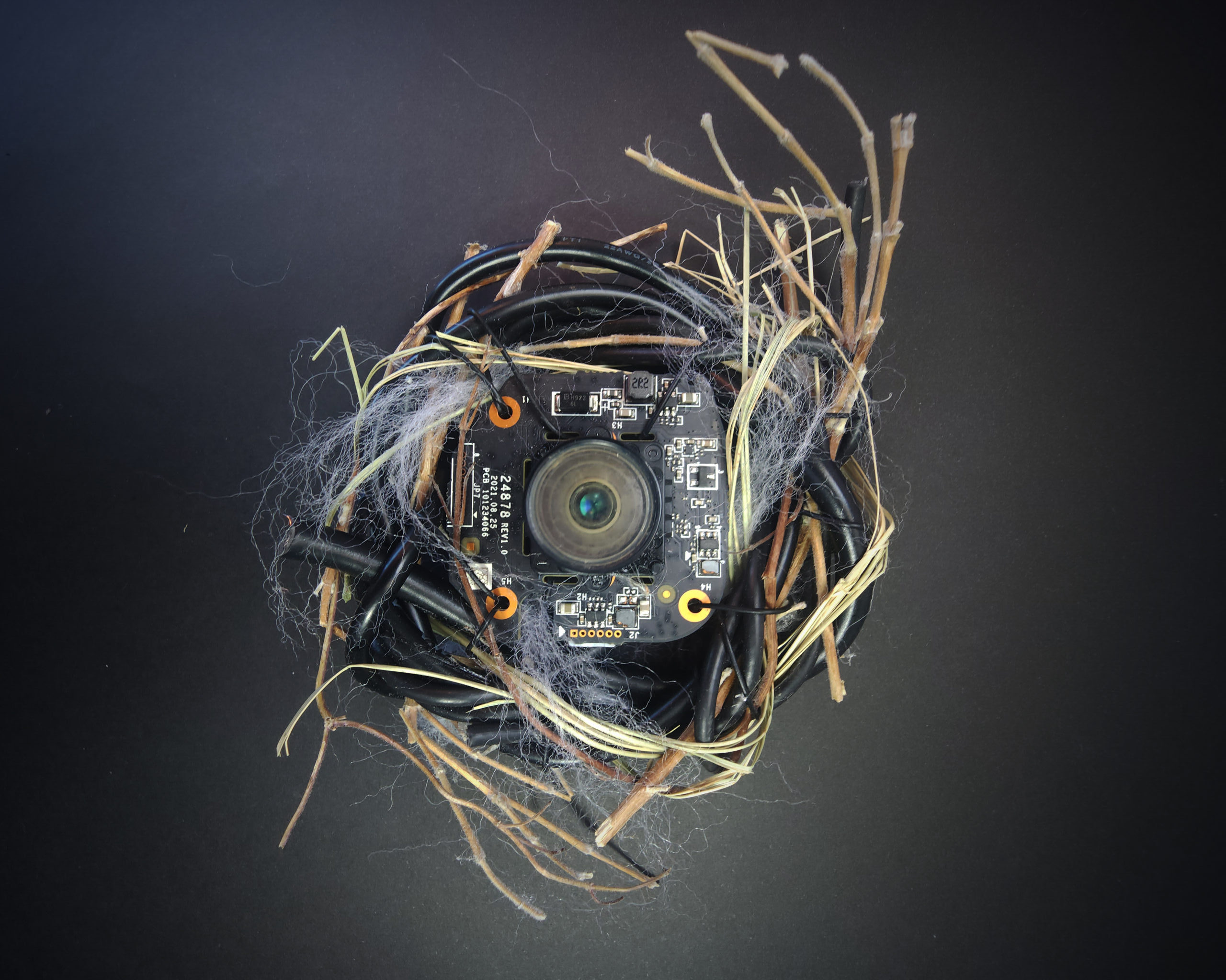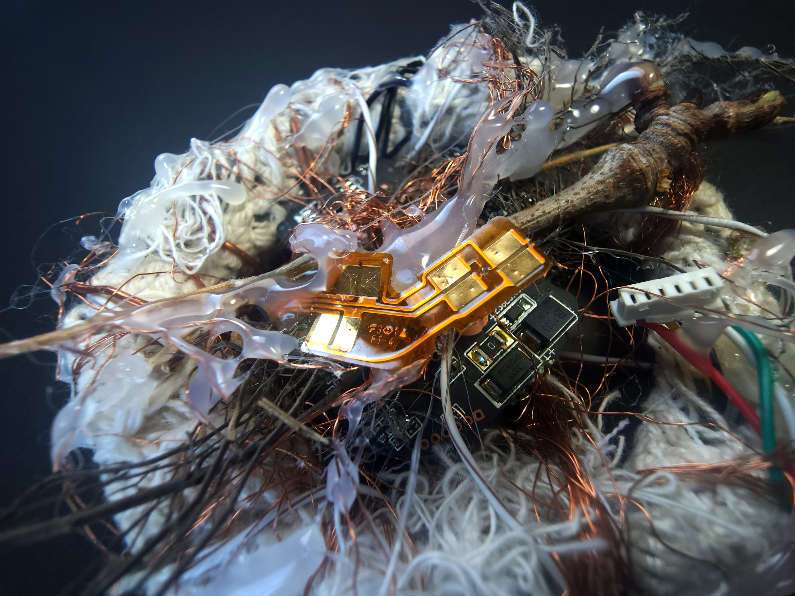 Un nido obsolescente es una experiencia artística performática conformada por piezas que cumplen una función ambivalente de vestimenta-joya, que dialogan acerca de la obsolescencia, problematizando en torno a las fronteras, puntos de encuentro e hibridación entre lo natural y lo artificial.